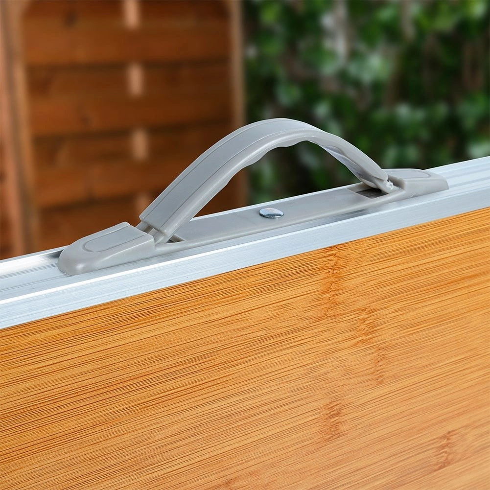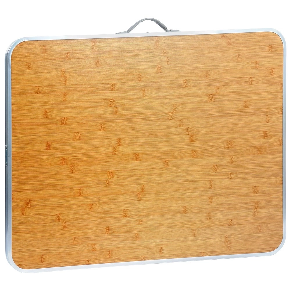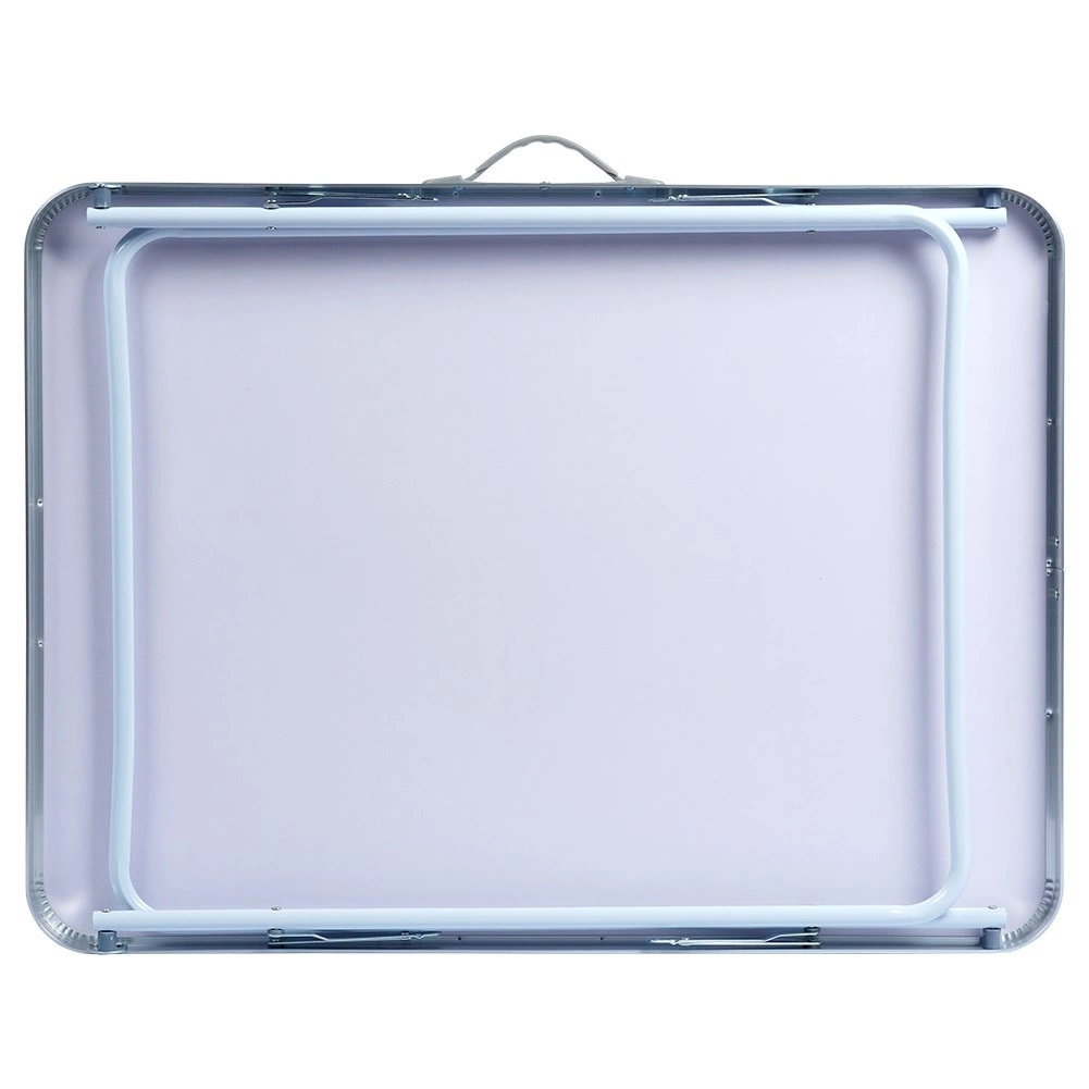 Når bordet er klappet sammen, har det en flad form og et praktisk håndtag for nem transport. Ideelt til camping, picnic og rejser.