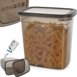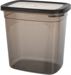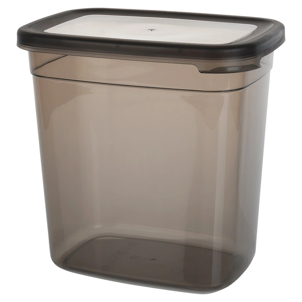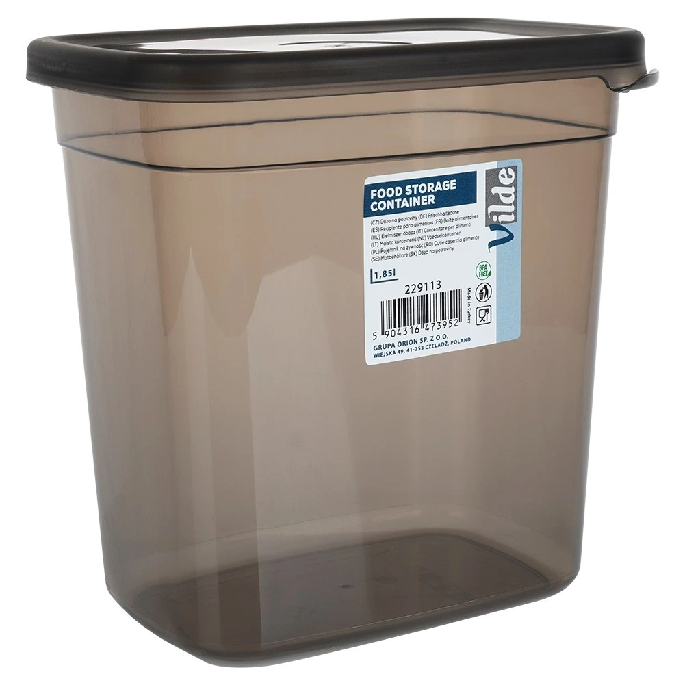 Skab orden i spisekammer og køleskab med den rummelige Vilde-boks på 1,85 l. De gennemsigtige sider i elegant røggrå farve giver hurtigt overblik over indholdet, mens det præcist tilpassede låg sikrer tæt lukning og bevarer friskhed og aroma i madvarerne.