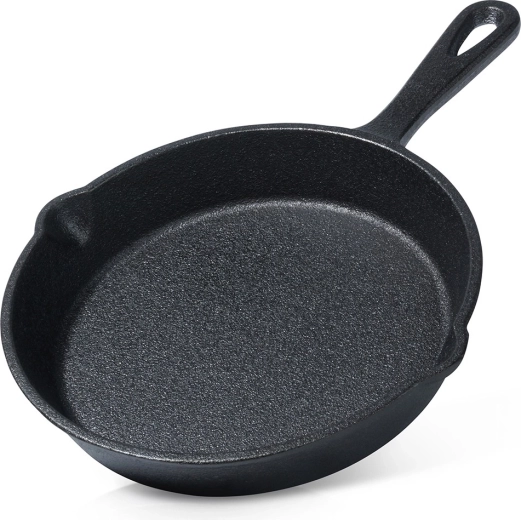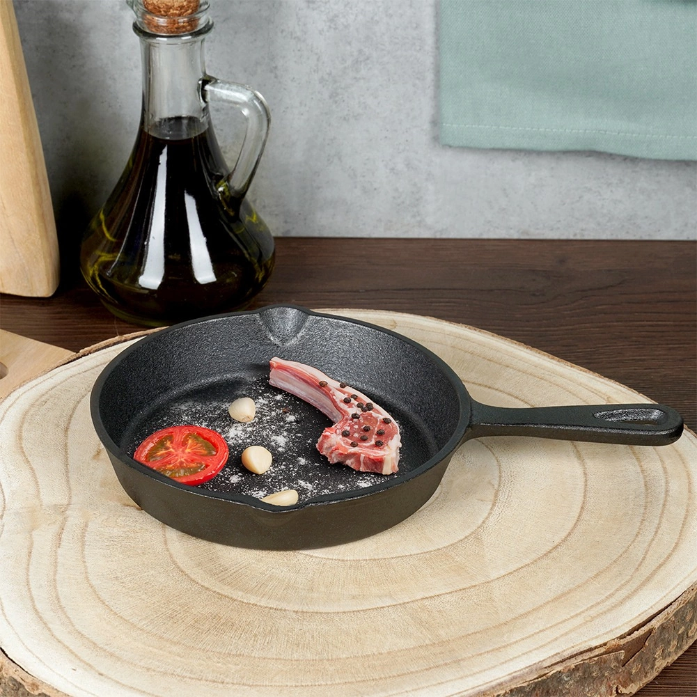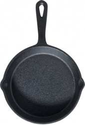 Kompakt støbejernspande med en diameter på 15 cm til daglig madlavning derhjemme, på grillen og i ovnen. Den tilbyder jævn varmefordeling, langvarig varmeakkumulering og modstandsdygtighed over for høje temperaturer. To praktiske hældetud gør serveringen nemmere, og hul i håndtaget muliggør ophængning. Velegnet til gas, el, keramik, halogen og induktion.