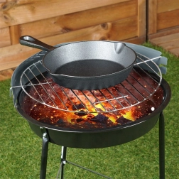 Panden kan bruges i køkkenet, på camping og ved grillning – den klarer gas-, elektriske, keramiske, halogen- og induktionskogeplader, åben ild og ovn. For lang levetid skal du blot følge enkel vedligeholdelse: vask efter brug, tør grundigt og olie let.