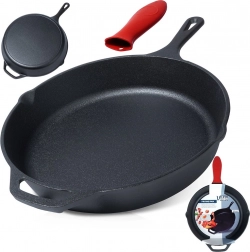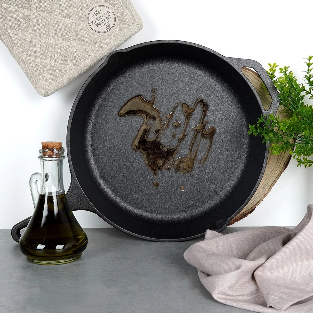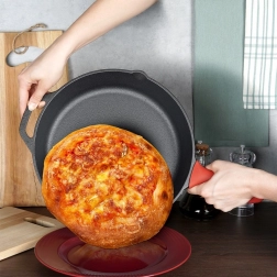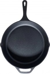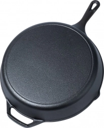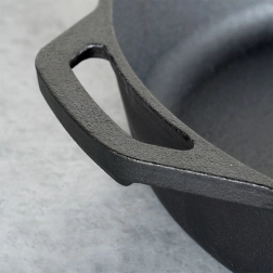 Den robuste støbejernspande er ideel til stegning, sautering, braisering og bagning. Det massive støbejern varmes jævnt op og holder varmen fremragende, så retterne forbliver varme og saftige længere. Takket være den holdbare konstruktion er panden velegnet til daglig madlavning derhjemme, i sommerhuset og på camping.