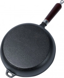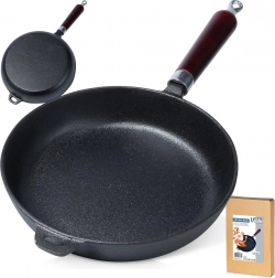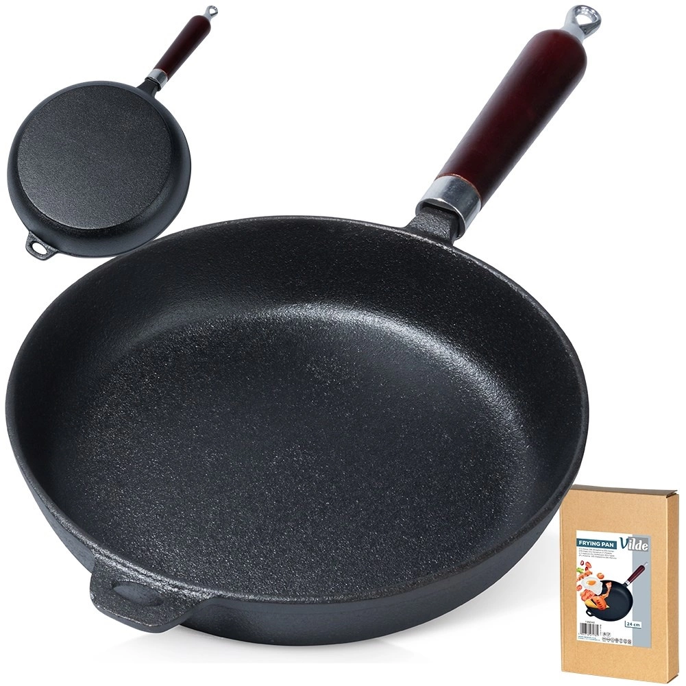 Alsidig støbejernspande med en diameter på 24 cm til daglig madlavning både hjemme og udendørs. Jævn varmedistribution, lang varmeakkumulering, modstandsdygtig over for høje temperaturer og ergonomisk træhåndtag gør den til en pålidelig hjælper til stegning, braisering og bagning på komfur, grill og i ovn.
