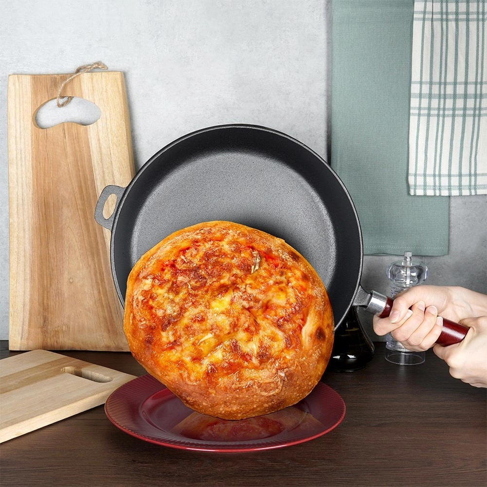 Tykkvægget støbejern opvarmes jævnt og akkumulerer varme fremragende for perfekte resultater ved både stegning og bagning.