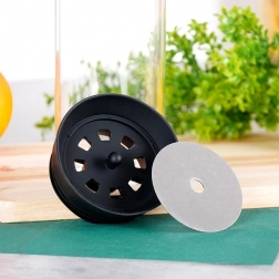 Det specialdesignede låg med clean-pour-system forhindrer, at væsken løber ned ad siden, og beskytter drikken mod insekter.