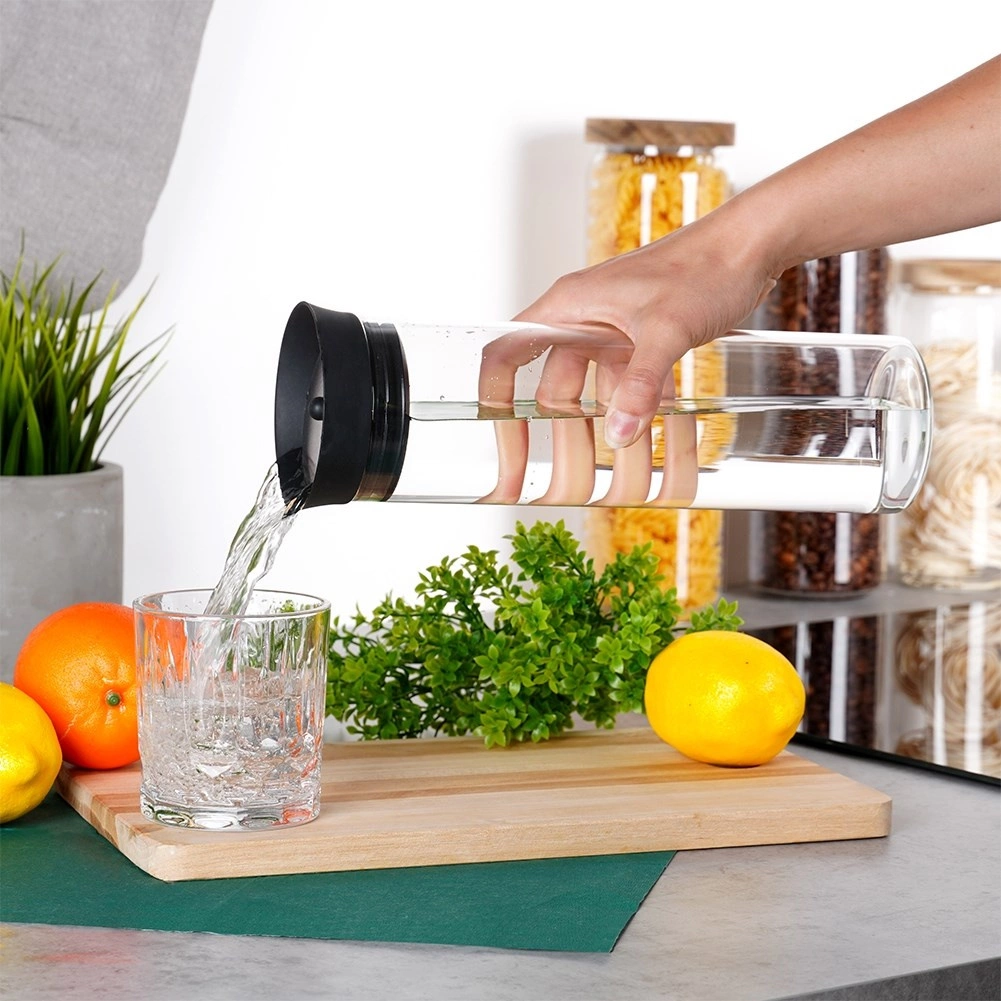 Denne alsidige karaffel er fremstillet af klart borosilikatglas, der udmærker sig ved høj holdbarhed og et elegant udseende. Låget i en kombination af silikone og rustfrit stål sikrer ren hældning uden dryp og beskytter samtidig drikken mod snavs og insekter.