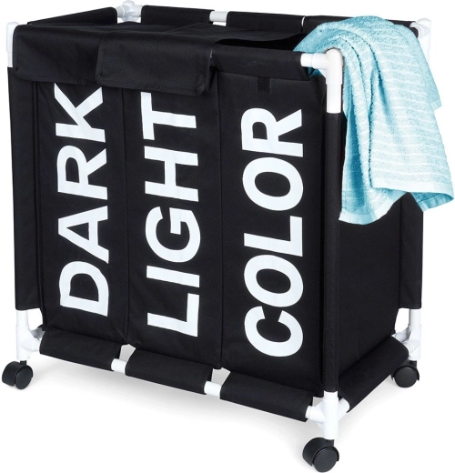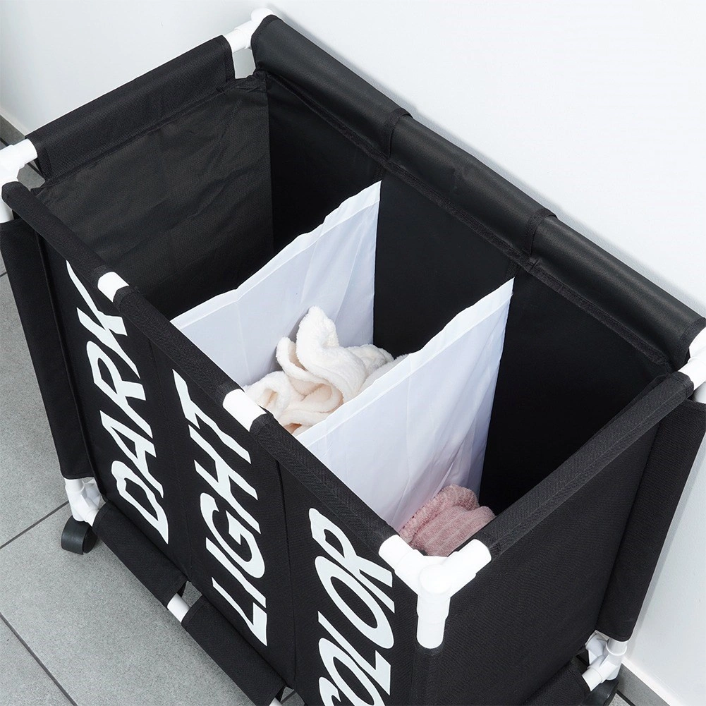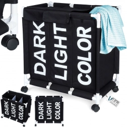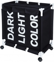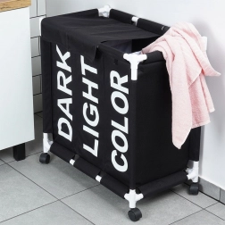 Hold hjemmet organiseret med en gennemtænkt vasketøjskurv med 137 l kapacitet og tre adskilte kamre. Synlige mærkninger DARK, LIGHT og COLOR gør den daglige sortering hurtigere, mens det robuste tekstil holder formen selv ved fuld belastning. Den mobile konstruktion på hjul sparer tid og ryg – du triller nemt tøjet direkte til vaskemaskinen.