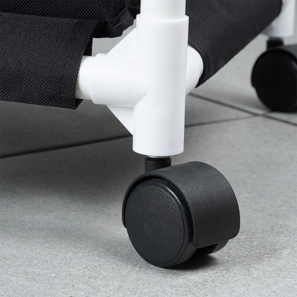 Fire drejelige hjul giver jævn bevægelse i hjemmet selv på trange områder. Flyt den fyldte kurv uden anstrengelse direkte til vaskemaskinen.