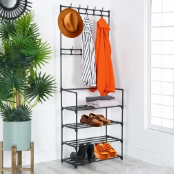 - Multifunktionel 3-i-1: tøjstativ, kroge til accessories og skoreol