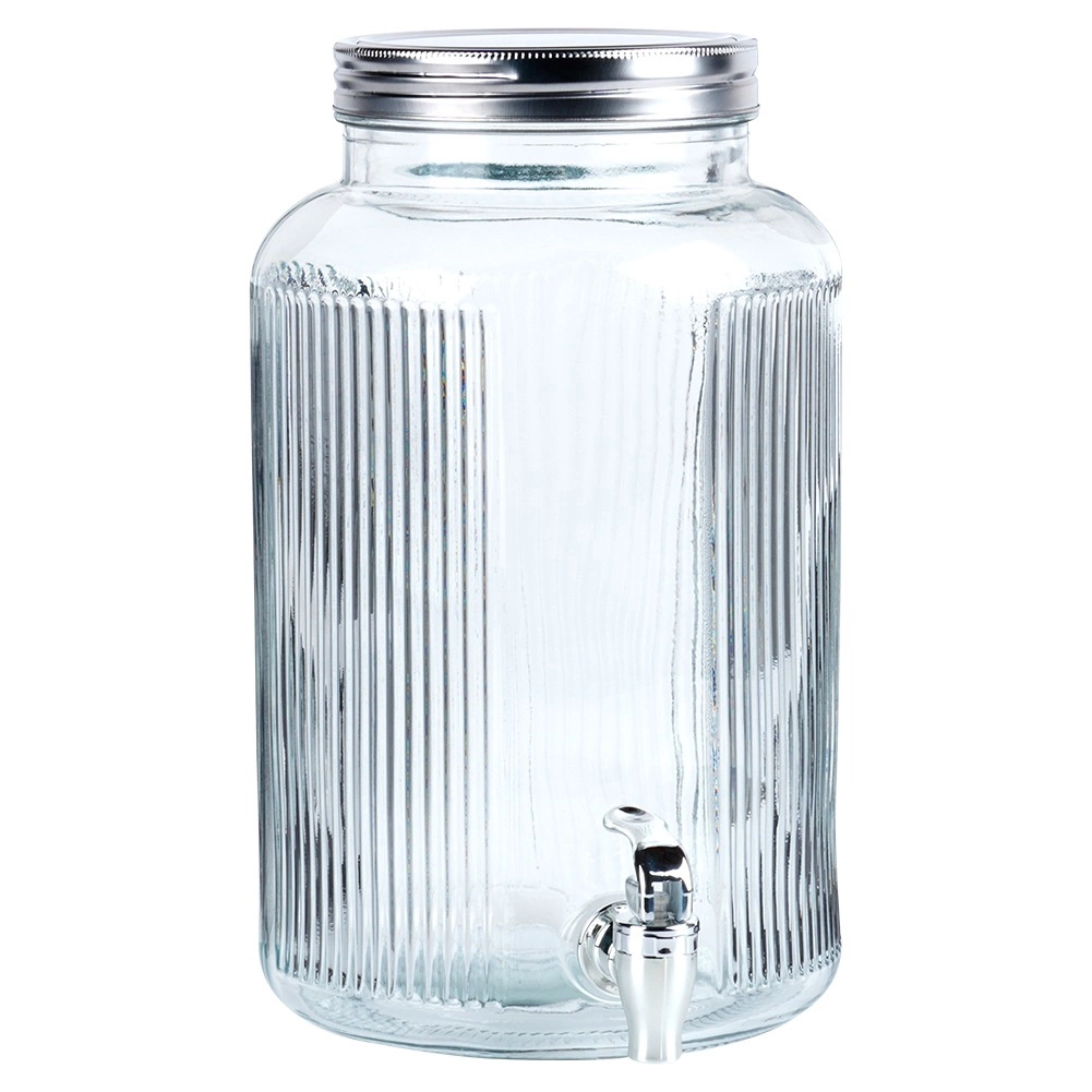 Den rummelige glasdispenser med hane gør det nemt at servere drikke ved enhver lejlighed. Den brede åbning giver bekvem påfyldning og rengøring, den gennemsigtige beholder gør det let at se indholdet, og det metalliske låg beskytter pålideligt drikken mod insekter. Ideel til vand med citrus, hjemmelavet limonade, juicer, sangria eller punch (ikke til varme drikke).