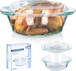 Praktisk glasfad til ovn med låg i to størrelser til alsidig bagning og servering. Fremstillet af borosilikatglas, modstandsdygtigt fra -30 °C til +400 °C, egnet til ovn, mikroovn, opvaskemaskine samt køleskab og fryser. Det gennemsigtige glas gør det let at overvåge tilberedningen, håndtag sikrer sikker håndtering, og låget kan bruges som en ekstra skål.