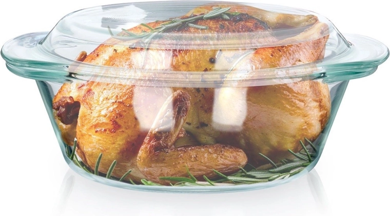 Klart borosilikatglas gør det muligt at følge tilberedningen uden at løfte låget – retten forbliver saftig, og ovnen holder en stabil temperatur.