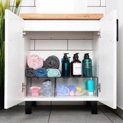 Juster problemfrit bredden fra 34,5 til 48 cm, så hylden nemt passer til de fleste skabe og hylder. En ideel løsning til optimering af pladsen uden boring.