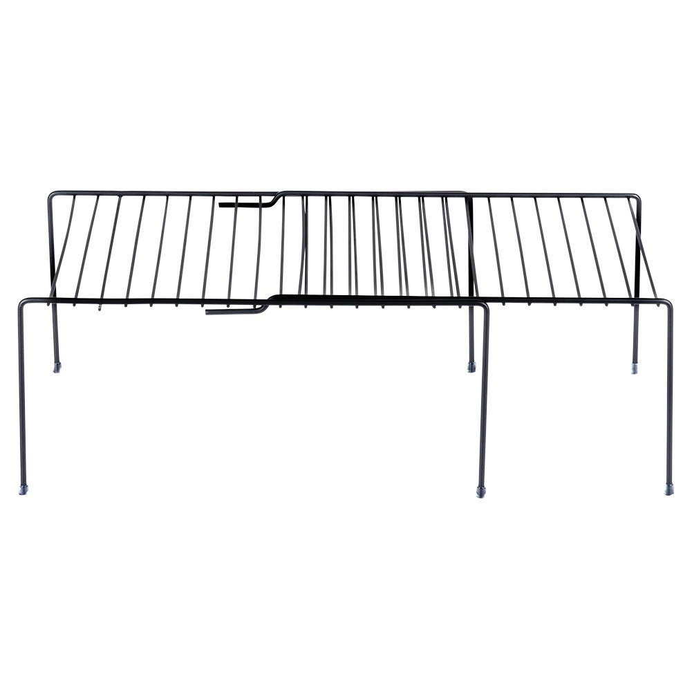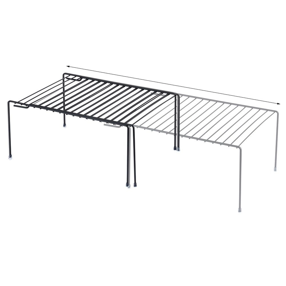 Få mest muligt ud af hver hylde. Den udtrækkelige metalhylde i elegant sort deler effektivt skabets højde i to niveauer, så service, dåser eller glas opbevares overskueligt og sikkert. Takket være den trinløse længdejustering fra 34,5 til 48 cm tilpasses den nemt til skabe og hylder i forskellige bredder.