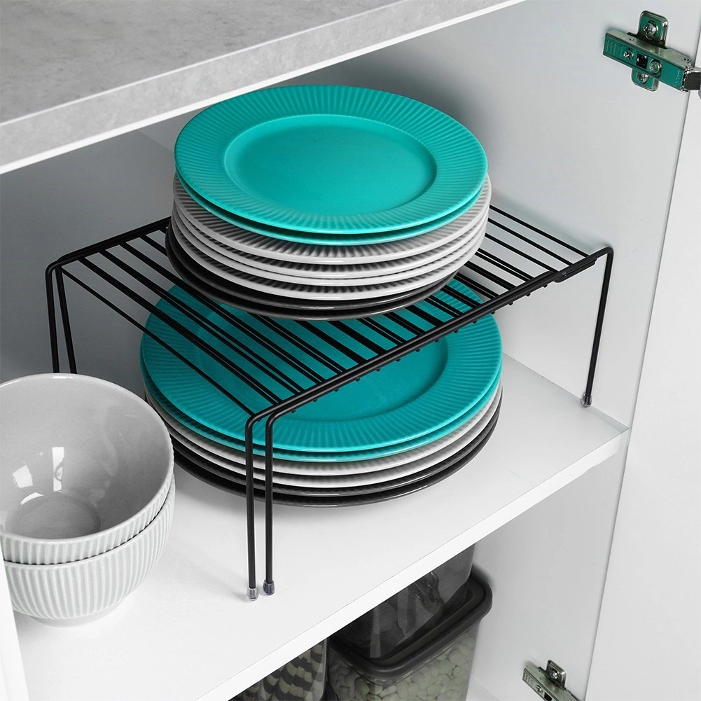 Skaber et ekstra niveau til tallerkener, skåle og glas og fordobler skabets kapacitet. Bedre organisering og hurtigere adgang til tingene hver dag.