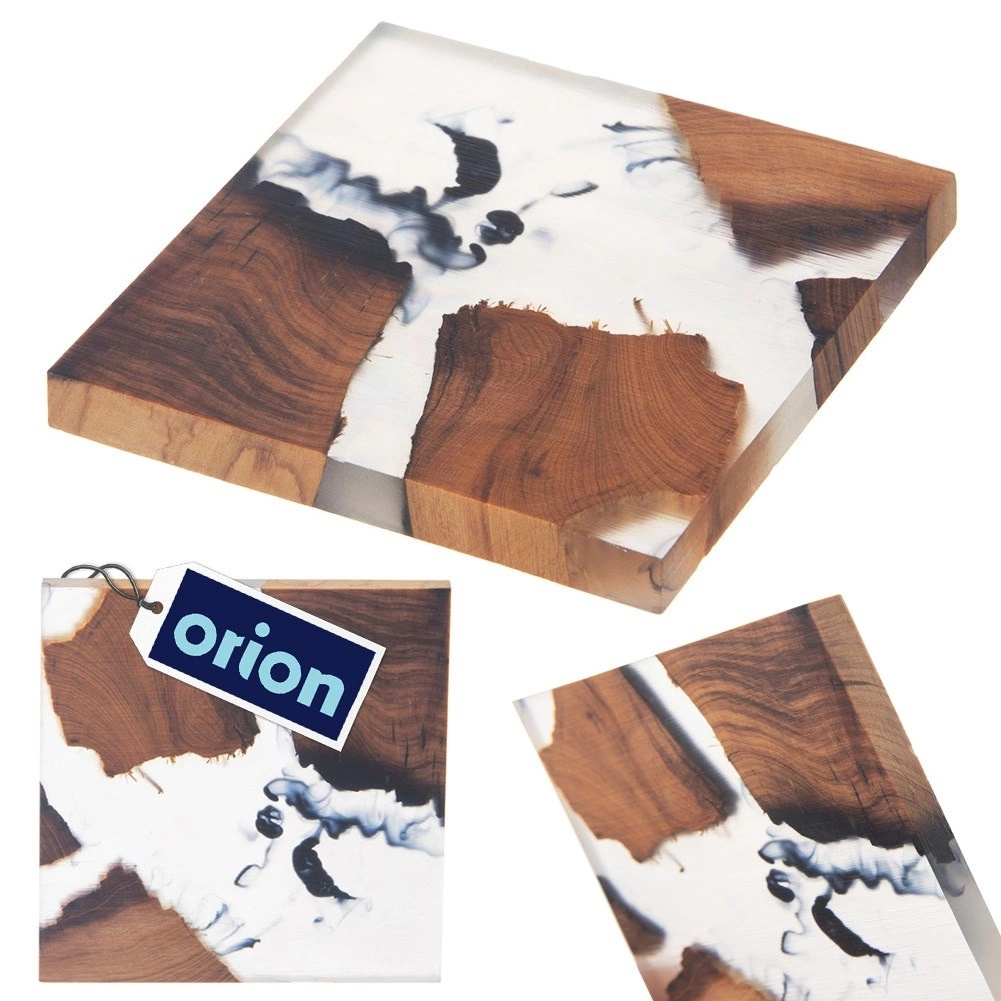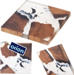 Det firkantede underlag af akacietræ med indlæg af hvid harpiks i et effektfuldt “river”-design er et både praktisk og dekorativt tilbehør til køkken og stue. Takket være den glatte overflade og den solide tykkelse beskytter det pålideligt bordplader mod varme fra varme drikke og fugt fra afkølede glas.