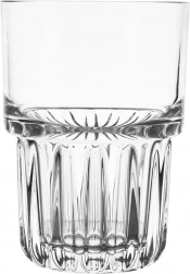 Praktisk glas med en kapacitet på 320 ml af kvalitetstykt glas med indsnævret bund og lodrette riller for et sikkert greb. Det er gennemsigtigt til elegant servering af vand, lemonader, juicer og iste, og det tåler både opvaskemaskine og mikroovn.