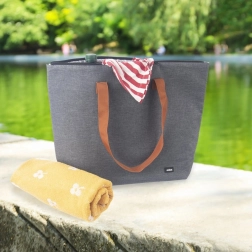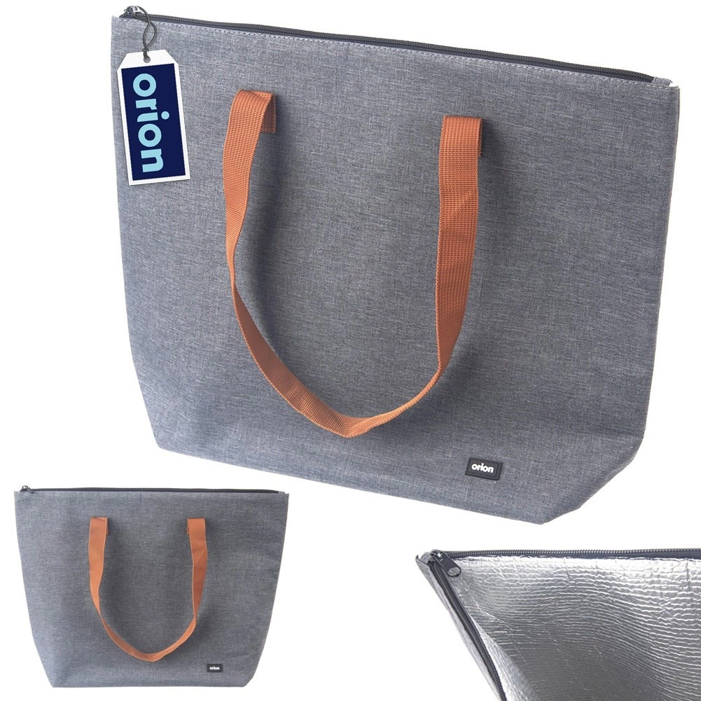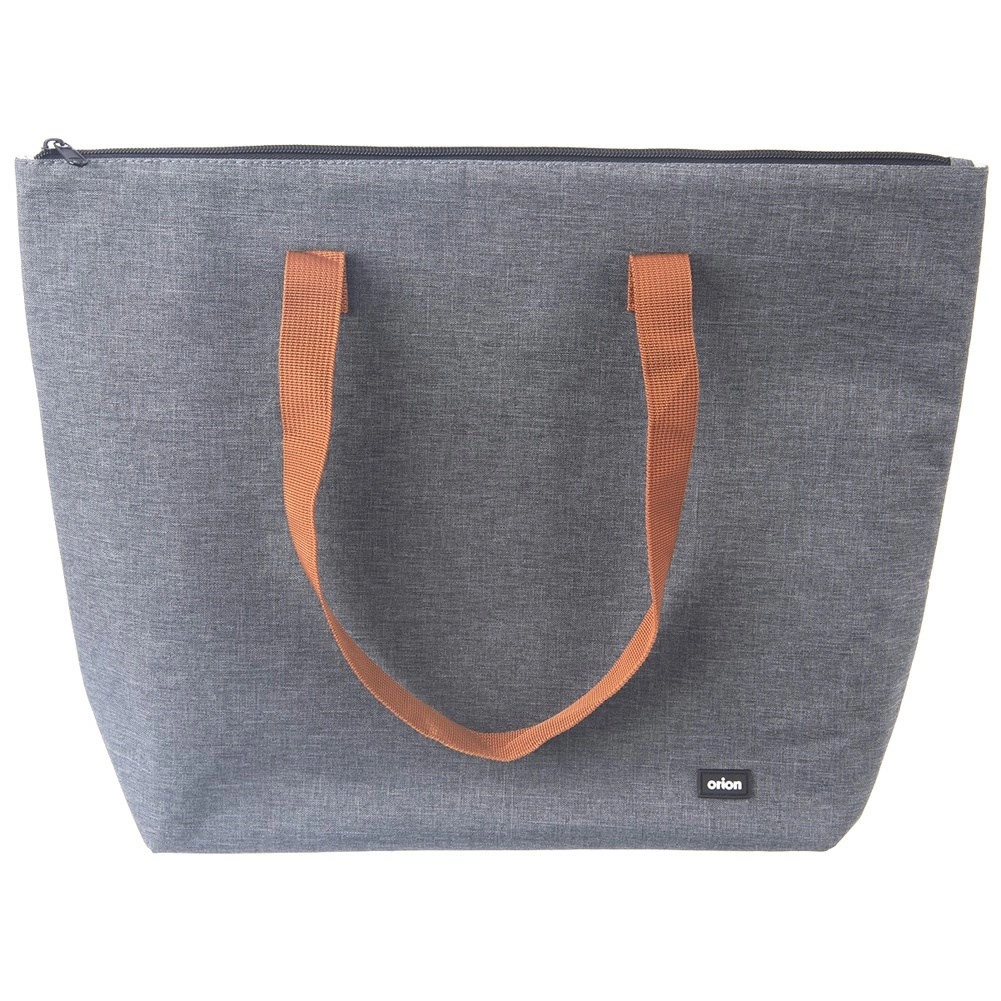Tasken er lavet af kraftigt polyestervæv, der er modstandsdygtigt over for slitage. Den grå krop suppleres af brune stropper på ca. 30 cm for komfortabel bæring i hånden eller over skulderen. Perfekt til strand, picnic, indkøb og rejser – om sommeren holder den drikkevarer og snacks kolde, om vinteren hjælper den med at holde maden varm.