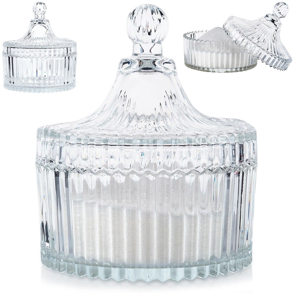 Takket være den alsidige anvendelse fungerer den ikke kun til krystal- og sukkertoppe, men også til slik, småkager, bolsjer eller som opbevaringsboks til badeværelset til vatrondeller eller småting. Glasbeholderen er egnet til kontakt med fødevarer og kan vaskes i opvaskemaskinen, hvilket gør vedligeholdelsen nem.