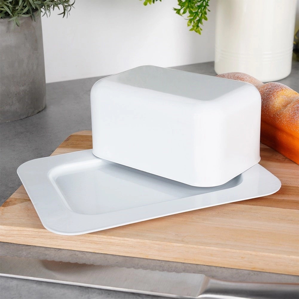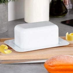 Smørboksen er fremstillet af kvalitetsstål med hvid pulverlakering. Den er robust, tidløs og passer perfekt ind i ethvert køkken.