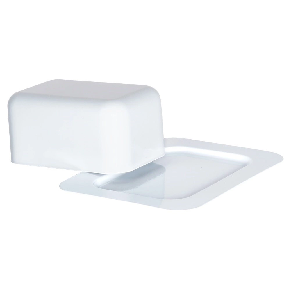 Den stilfulde smørboks i stål i hvid farve er ideel til opbevaring og servering af smør både derhjemme og ved servering for gæster. Den pulverlakerede overflade virker elegant og øger samtidig modstanden mod ridser.