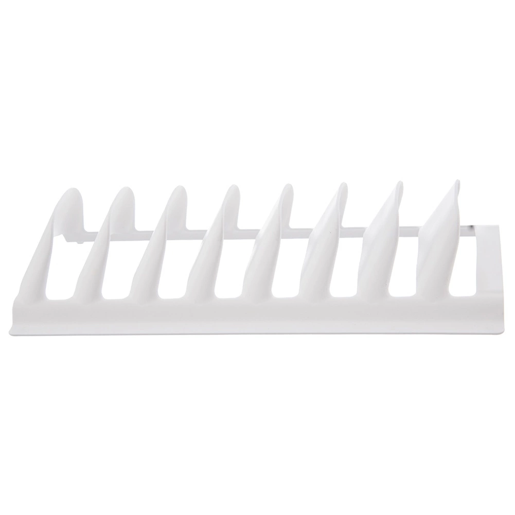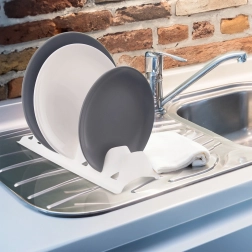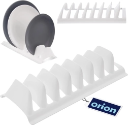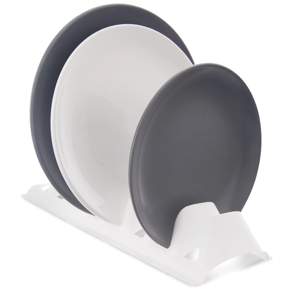 Praktisk køkkenorganizer til overskuelig tørring og opbevaring af op til 8 tallerkener eller låg. Takket være de solide adskillende ribber holder den servicen stabilt i lodret position, sparer plads i skab, skuffe og på køkkenbord og hjælper med at forhindre ridser. Let, men robust plast i hvid farve er nem at rengøre og egnet til opvaskemaskine.