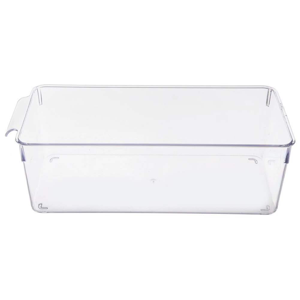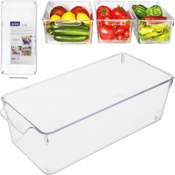 Praktisk, gennemsigtig køleskabsorganisator i størrelsen 32,5 × 15 × 10 cm, som hjælper med at holde orden i madvarerne og udnytte pladsen maksimalt. Takket være det integrerede håndtag kan den nemt trækkes ud, den er lavet af fødevaresikker plast og er let at rengøre. Ideel til frugt og grønt, flasker og dåser samt andre husholdningsartikler.