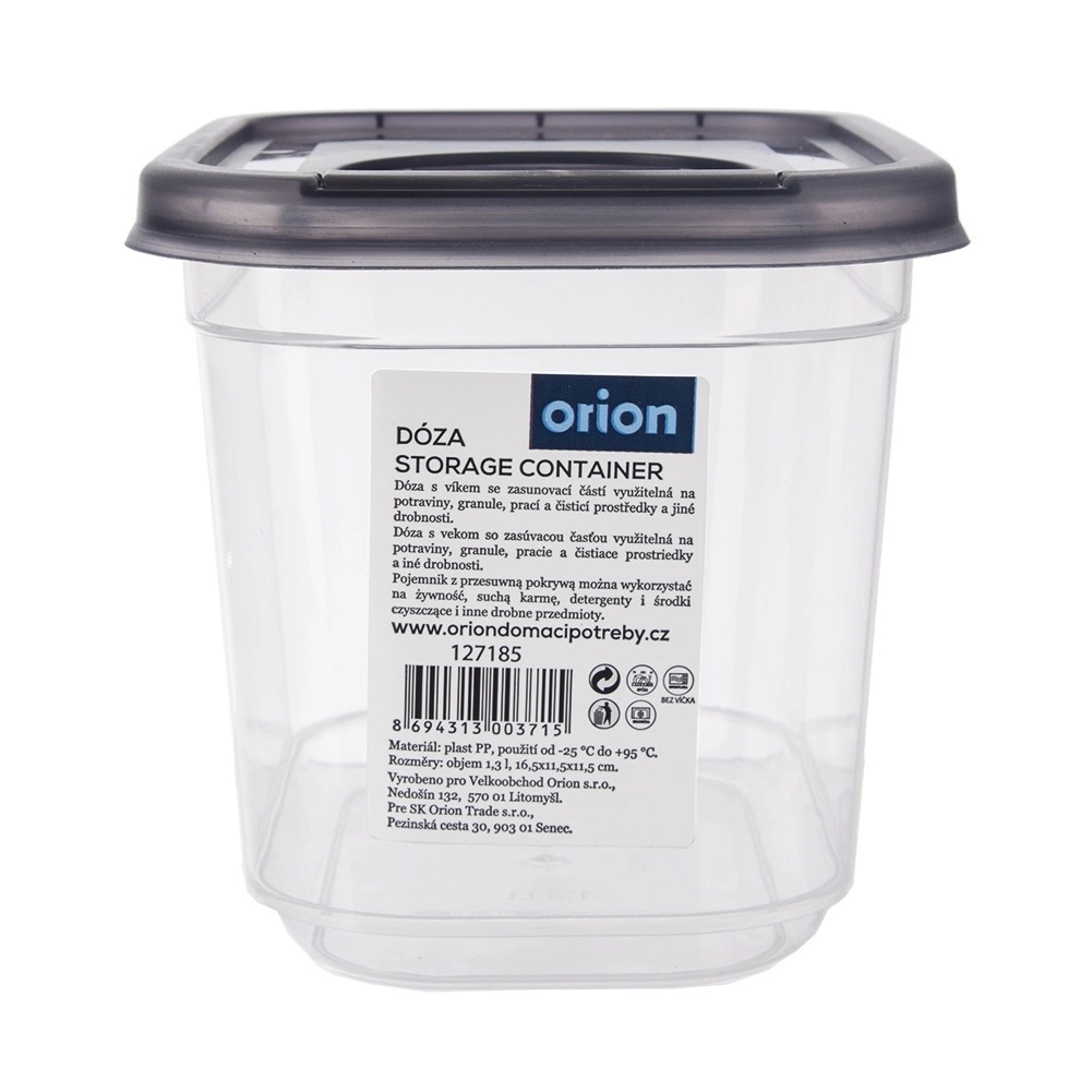 Praktisk beholder til tørvarer med integreret doseringslåg på 1,3 l, som holder dine ingredienser friske længere og pænt organiserede. Takket være den gennemsigtige beholder har du altid overblik over indholdet, mens det tætsluttende låg og doseringsåbningen gør daglig brug nemt. Fremstillet i BPA-fri plast, egnet til køleskab, fryser og opvaskemaskine samt til opvarmning i mikrobølgeovn uden låg.