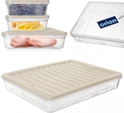 Hold orden i køleskab og spisekammer med den lave madkasse på 2 l. Det gennemsigtige korpus gør det muligt straks at se indholdet uden at åbne, og det cremefarvede låg sørger for sikker og hygiejnisk lukning. Den lave profil er perfekt til opbevaring af skiveskåret ost, skinke, salami og andet omhyggeligt forberedt pålæg.