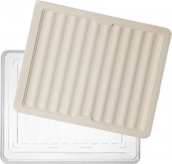 Den bølgede indsats løfter maden fra bunden, forbedrer luftcirkulationen og reducerer kontakt med fugt, så både ost og pålæg holder sig friske længere.