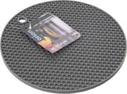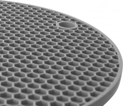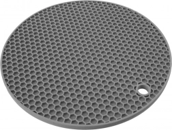 Praktisk silikoneunderlag til varmt køkkengrej i størrelsen 17,5 × 17,5 cm beskytter bordplade og bord mod varme og ridser. Har skridsikkert bikubemønster, ophængshul og er lavet af holdbar silikone, som er egnet til opvaskemaskine. Tåler temperaturer fra -10 °C til +220 °C og passer ind i ethvert køkken.