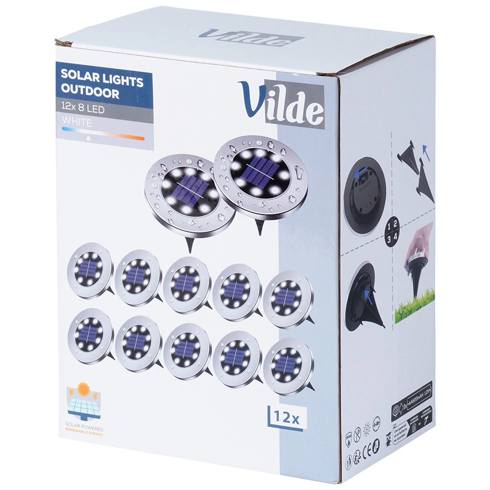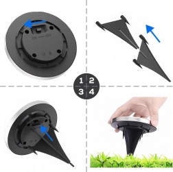 Hver lampe har 8 kraftige LED’er med hvidt lys, en robust konstruktion med IP44-klassificering og nem installation uden værktøj – det er blot at sætte dem i jorden. Efter fuld opladning (ca. 6–8 t) lyser de i cirka op til 6 timer. Betjeningen sker via ON/OFF-knap og skumringssensor.