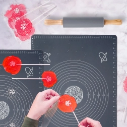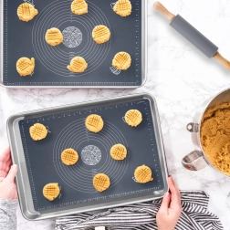 Silikonemåtten forhindrer, at dejen hænger fast, og takket være den skridsikre underside ligger den stabilt. Mindre mel, renere køkken og mere præcist resultat.
