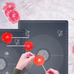 Med denne alsidige silikonemåtte får du en stor og stabil arbejdsflade, der klæber perfekt til bordet og ikke glider under arbejdet. Takket være den non-stick overflade behøver du kun et minimum af mel, og dejen klistrer ikke, så du kan rulle og udstikke rent og præcist.