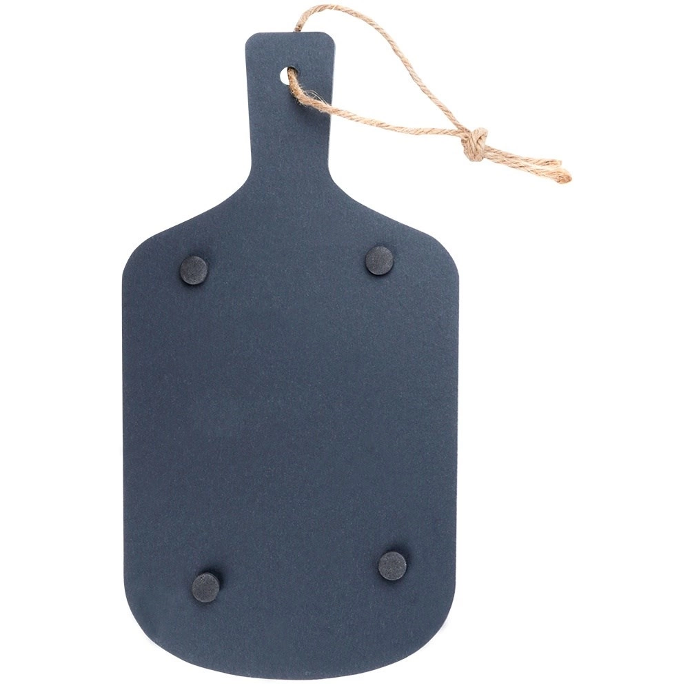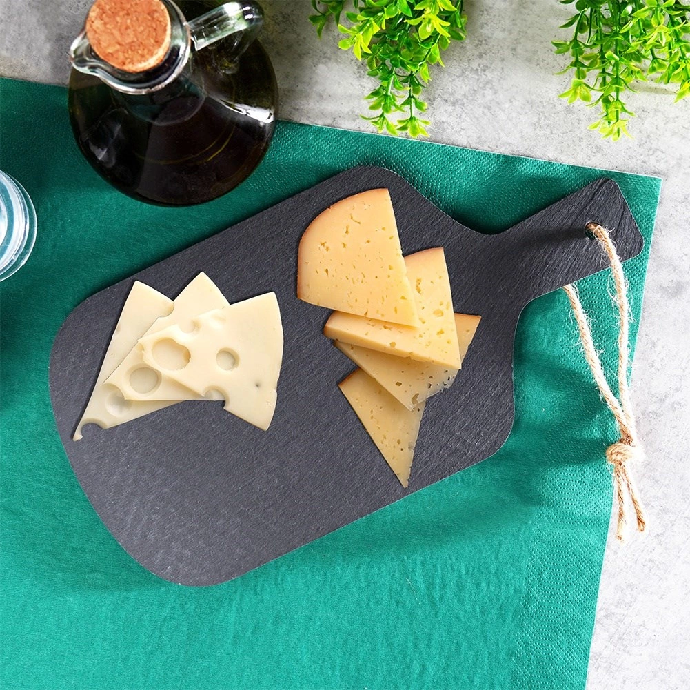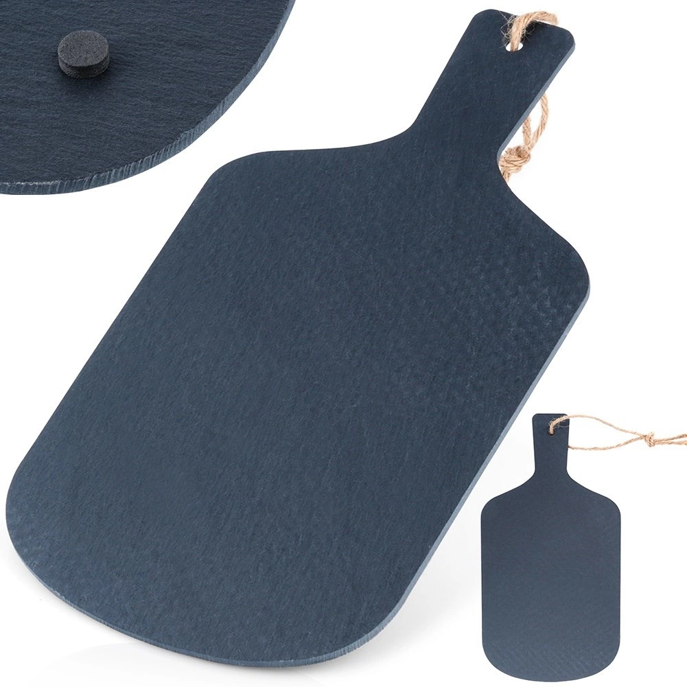 Skifermaterialet akkumulerer naturligt varme og kulde, så brættet kan forvarmes eller afkøles før servering for bedre temperaturholdning. De skridsikre fødder i bunden sikrer stabilitet på både bordplade og dug. Nem at rengøre med en fugtig klud; opvask i maskine anbefales ikke.
