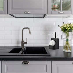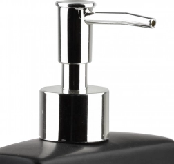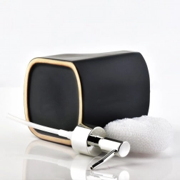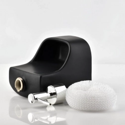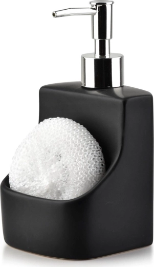 Den stilfulde dispenser kombinerer beholder til flydende middel med integreret opbevaringsplads til svamp eller klud. Takket være de kompakte mål 9,5 × 9,5 × 19 cm passer den perfekt ved vasken og hjælper med at holde arbejdsfladen overskuelig. Mat sort keramik virker elegant og passer til moderne, klassiske og industrielle rum.