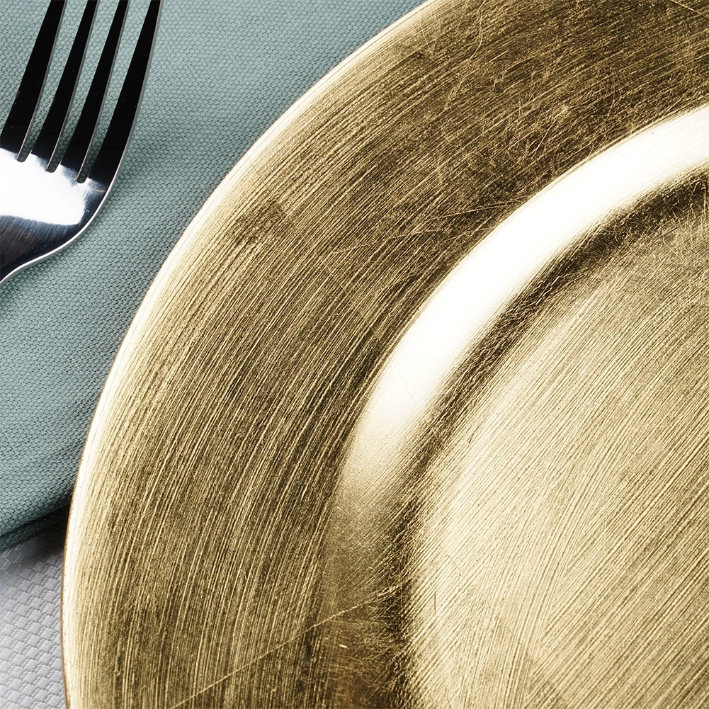 Det dekorative underlag i moderne guld er ideelt som en stilfuld charger-tallerken og som base for dekorative arrangementer med lys eller blomster. Den klassiske runde form med bred kant fremhæver opdækningen smukt og beskytter samtidig dugen mod varme og snavs.