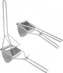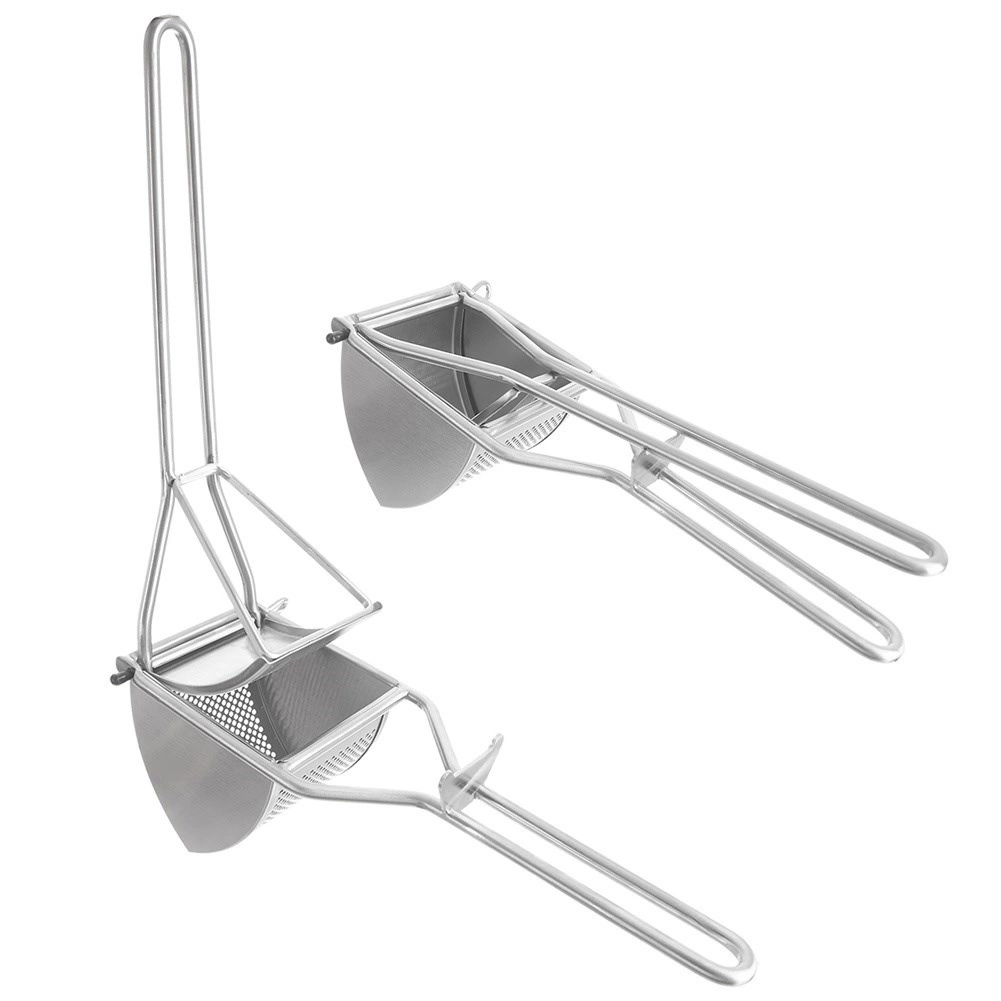 Den robuste presser i rustfrit stål i et elegant sølvfinish er en uundværlig hjælper i ethvert køkken. Læg kogte kartofler i, pres håndtagene sammen, og du får en fin puré på et øjeblik. Den klarer lige så pålideligt kogte grøntsager eller blød frugt til babymos.