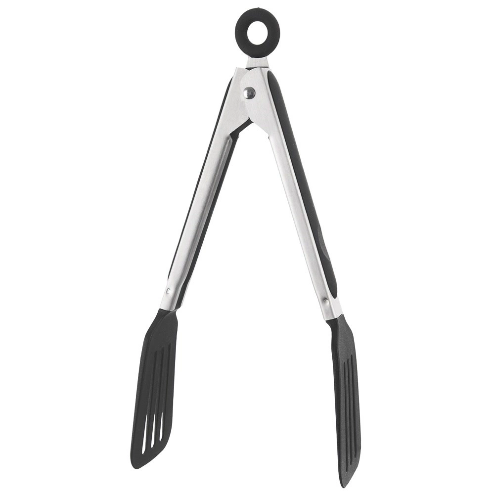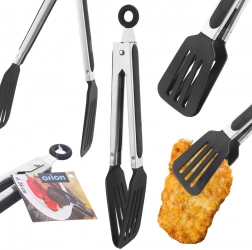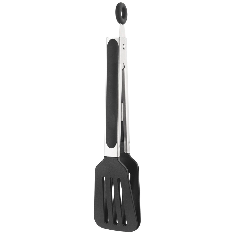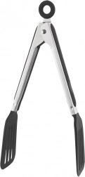 Praktiske tænger til daglig brug i køkkenet og ved grillen. Takket være den robuste krop i rustfrit stål og varmeresistente PBT-spidser kan du nemt og sikkert vende kød på panden, tage kogte grøntsager op af vandet, blande salat eller servere færdige retter. Spidserne er skånsomme mod teflon-, keramik-, granit- og andre nonstick-overflader.