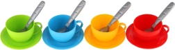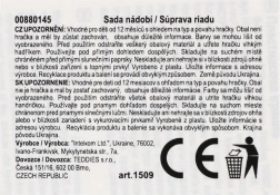 Sættet indeholder alt, der er nødvendigt til en lille tesammenkomst: kande, kopper med underkopper og skeer i glade farver. Pakket i et praktisk net, som gør det nemt at opbevare og transportere. Velegnet fra 12 måneder.