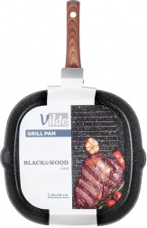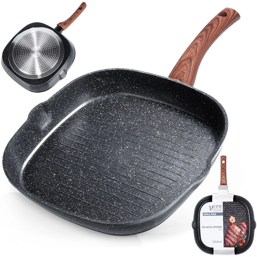 En stilfuld grillpande i kombinationen af sort stenlook og træ giver køkkenet et moderne præg og muliggør sund madlavning med minimalt fedt. Den højere rilleribbe leder overskydende fedt væk, giver markante sear-mærker og saftige resultater på kød, grøntsager og burgere.