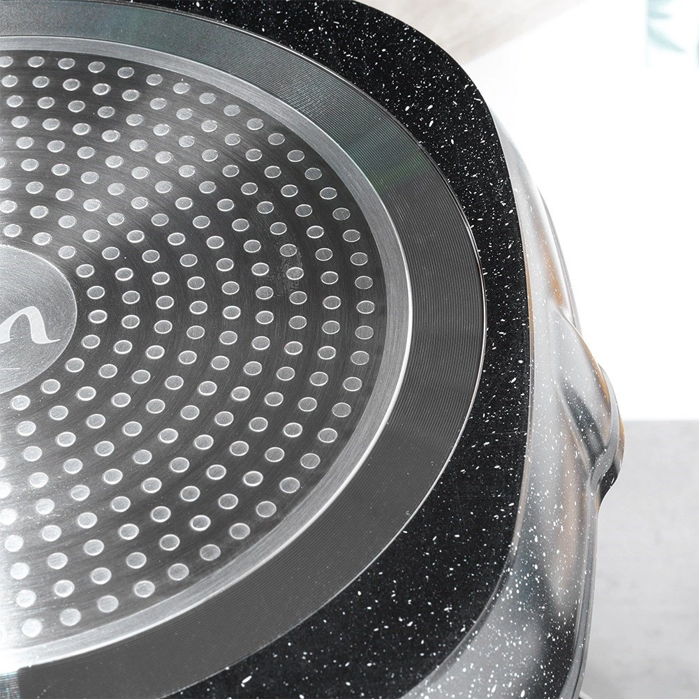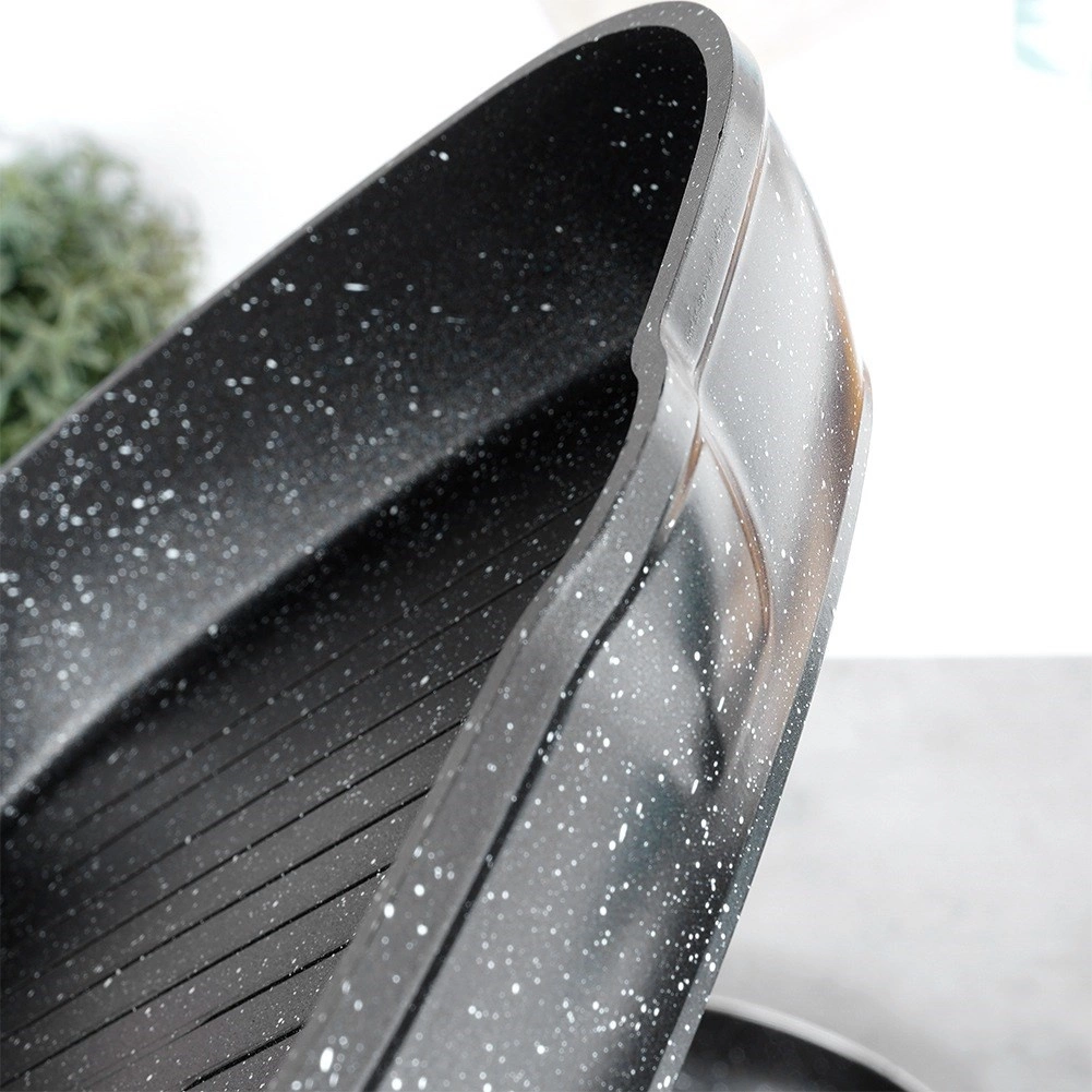 Granitoverfladen gør det muligt at lave mad med minimal olie, forhindrer fastbrænding og rengøres på få øjeblikke.