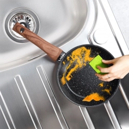 Det særlige granitlag forhindrer fastbrænding og muliggør tilberedning af retter med minimalt fedt. Maden slipper nemt, og panden er hurtig at rengøre.