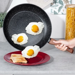 Den særlige stenbelægning gør det muligt at lave mad med minimal mængde fedt, forhindrer fastbrænding og gør rengøringen hurtigere. Ideel til daglig stegning og skånsom sautering.