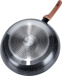 Opdag den alsidige pande BLACK & WOOD, som kombinerer holdbart støbt aluminium og en moderne granit non-stick belægning. Takket være den store diameter på 32 cm kan du nemt tilberede portioner til hele familien med minimal mængde olie. Det stilfulde sorte design med trædekoration passer perfekt i ethvert køkken.