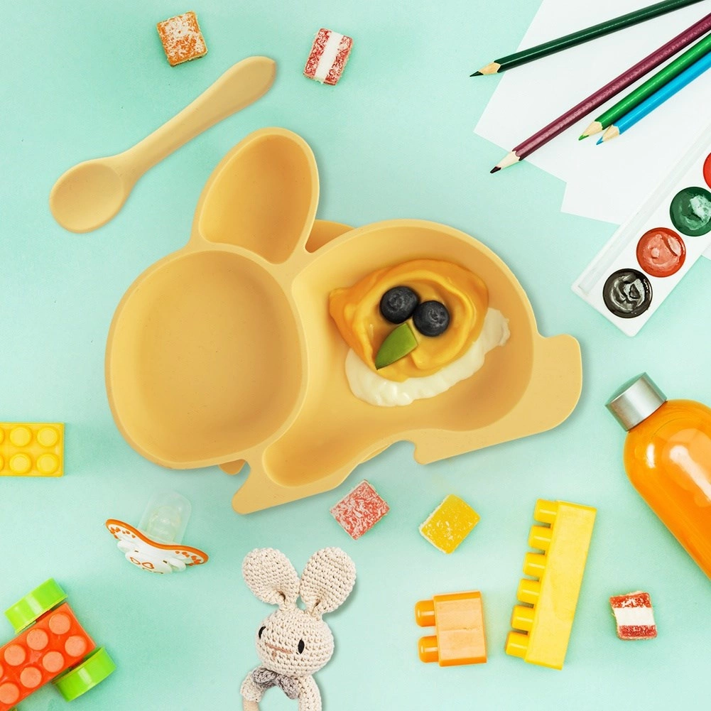 Gør hvert måltid sjovt og ryddeligt. Silikone-tallerkenen i kaninform med opdeling i 3 sektioner hjælper med at servere varierede måltider overskueligt og hygiejnisk. Den store sugekop på undersiden sidder fast på bord eller højstol og mindsker risikoen for spild.