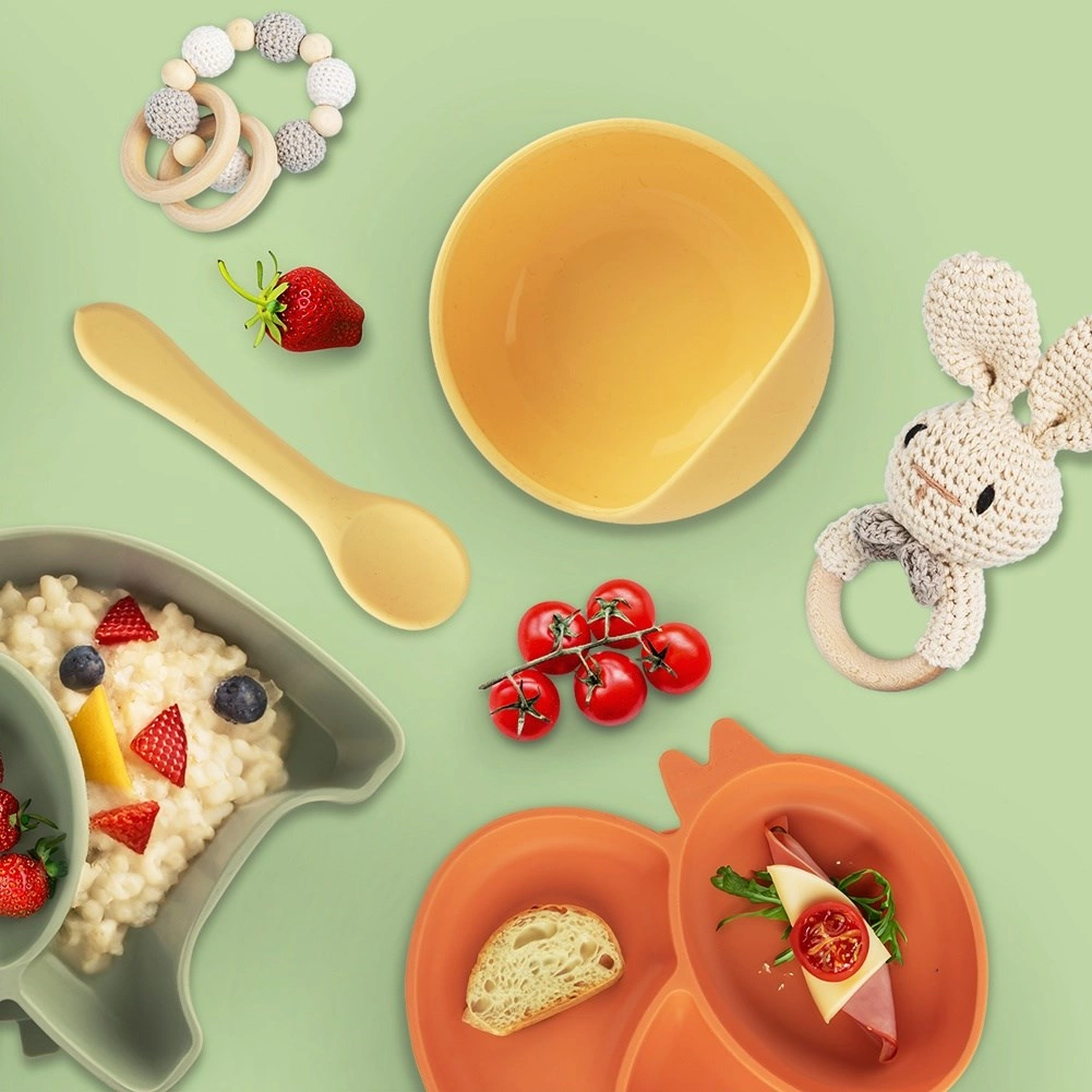 Denne silikoneskål til børn er designet til at støtte selvstændig spisning uden rod. Den stærke sugekop i bunden holder sikkert på glatte overflader, så skålen ikke glider eller vælter. Den høje, let forhøjede kant gør det nemmere at få maden op på skeen og hjælper med at begrænse spild.