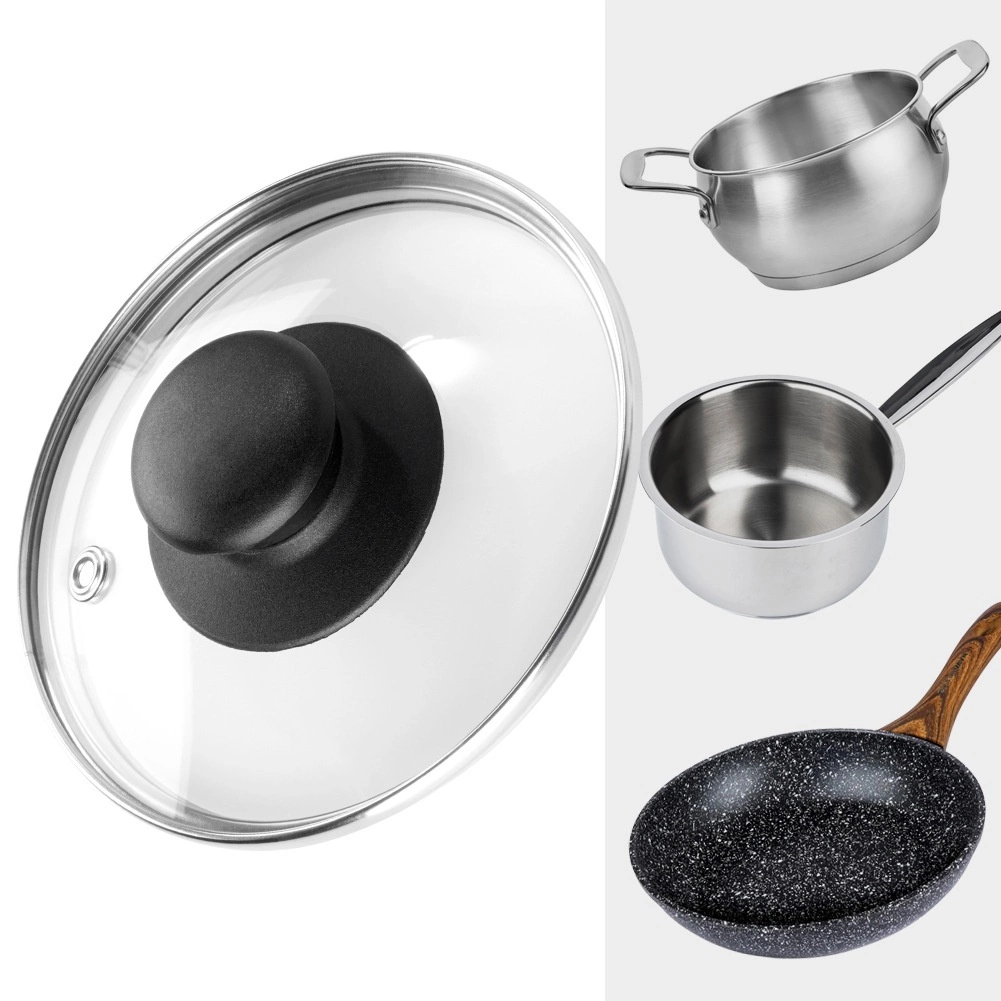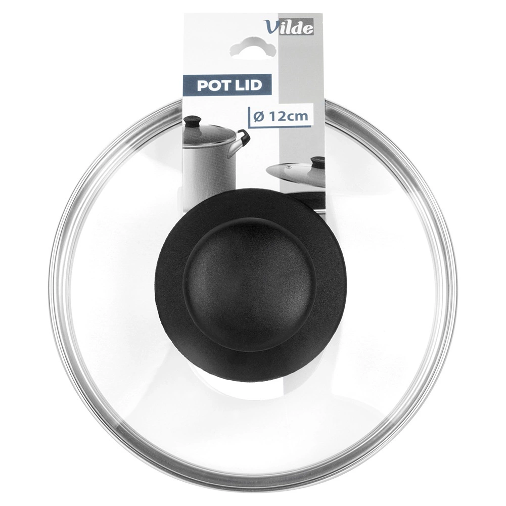 Dette universelle glaslåg passer præcist til gryder, pander og kasseroller med en diameter på 12 cm. Det gennemsigtige, varmebestandige glas med rustfri stålkant sikrer holdbarhed og nem vedligeholdelse, mens det ergonomiske håndtag giver et sikkert greb. Den let hvælvede form fremmer bedre cirkulation af varm luft.