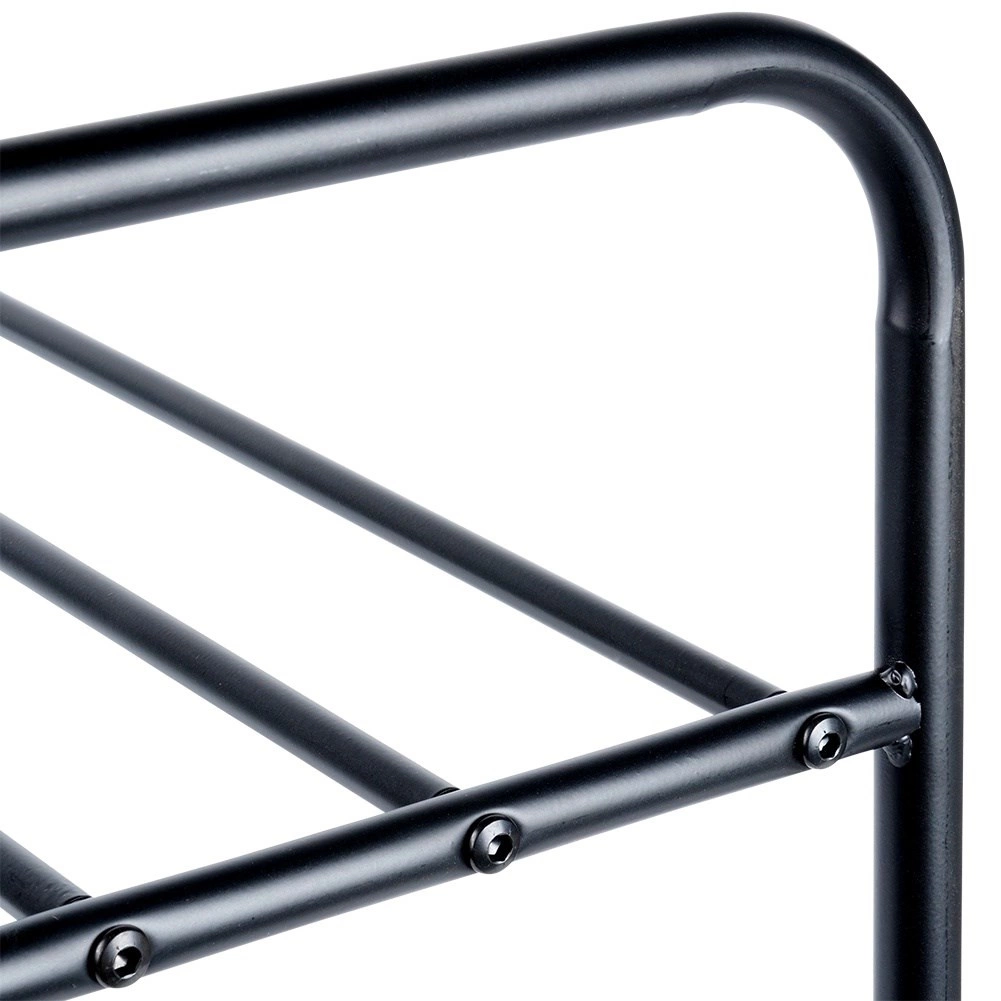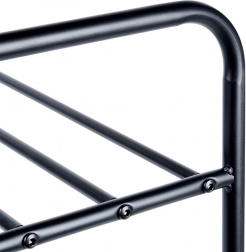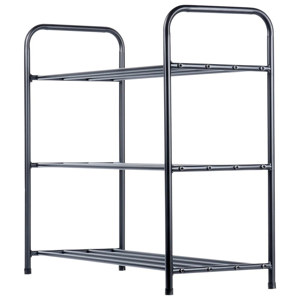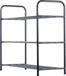 Denne tredelte metalskohylde skaber orden og overblik i hjemmet. Den åbne konstruktion med rørhylder muliggør luftcirkulation og holder skoene ventilerede og hurtigt tilgængelige. Den robuste ramme i pulverlakeret metal i sort mat er stabil og holdbar, men stadig let at flytte.