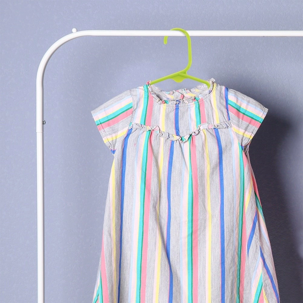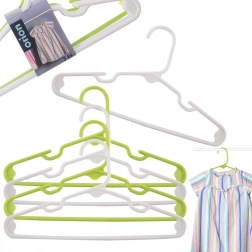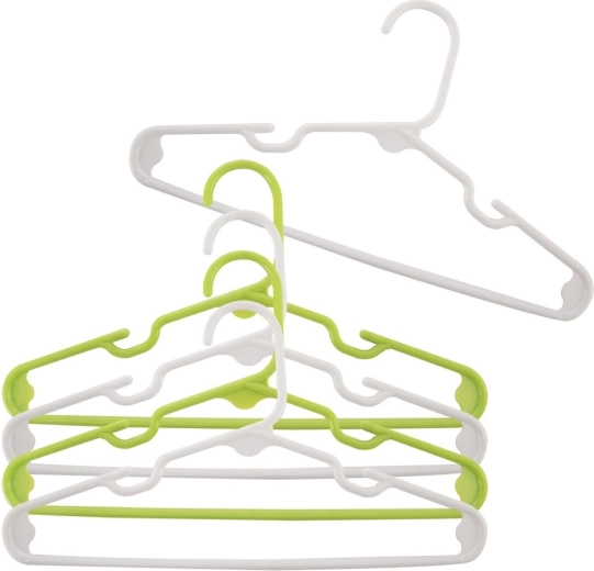 Fremstillet af kvalitetsplast i hvid og lysegrøn, som ikke deformeres og tåler daglig brug. Med de kompakte mål 29,5 × 16,5 × 0,5 cm er bøjlerne præcist tilpasset børnestørrelser og hjælper med at holde orden og overblik i skabet.