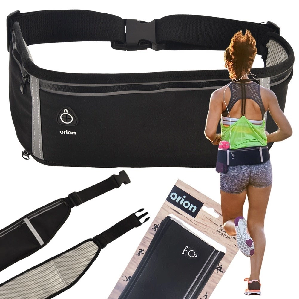 Praktisk løbebælte til sikker og behagelig opbevaring af småting under løb, gang eller cykling. Tilbyder vandafvisende materiale, tre separate lynlåslommer, gennemføring til hovedtelefoner, reflekterende elementer for bedre synlighed og justerbar elastisk rem for perfekt pasform.